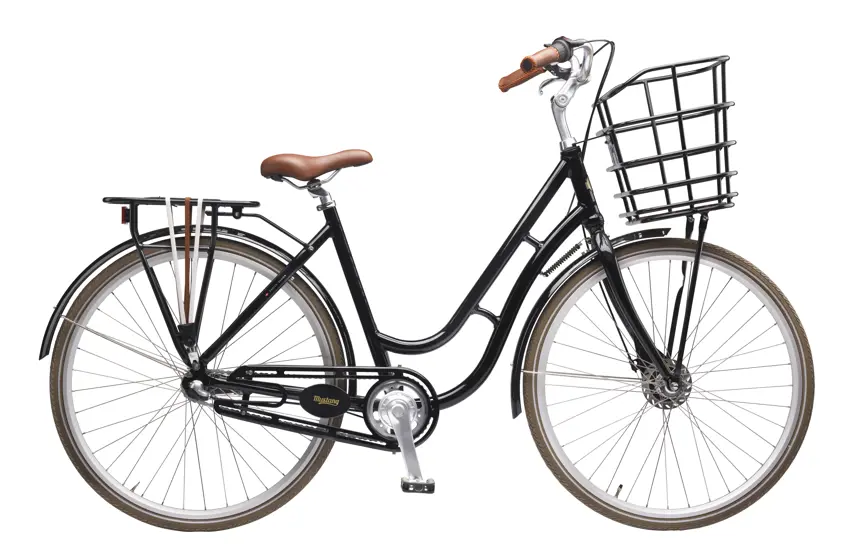 Fine detaljer som designskærm, bagagestropper og farvet kurv fuldender cyklens look og gør samtidig turen mere bekvem.
